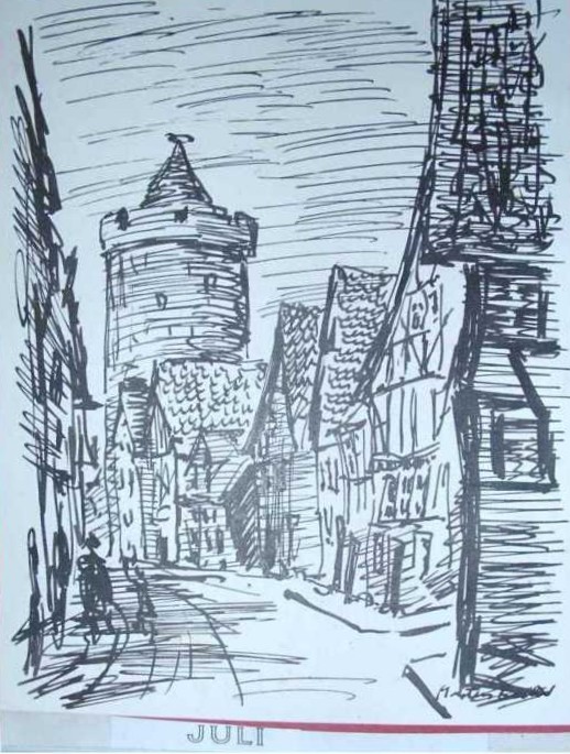 Tuschezeichnung, Alsfeld, untere Fuldergasse, 15 x 18