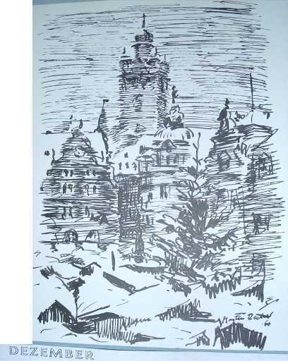 Tuschezeichnung, Darmstadt, Weihnachtsmarkt, 15 x 18