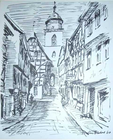 Tuschezeichnung, Alsfeld, oberere Fuldergasse, 15 x 18