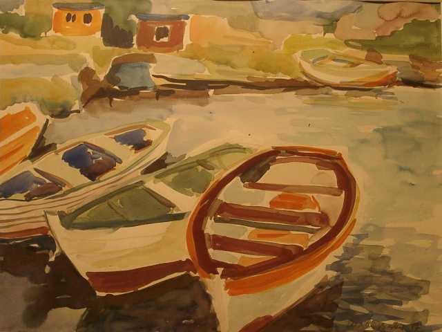 Bootel im Hafen, entstanden auf einer Reise nach Schweden