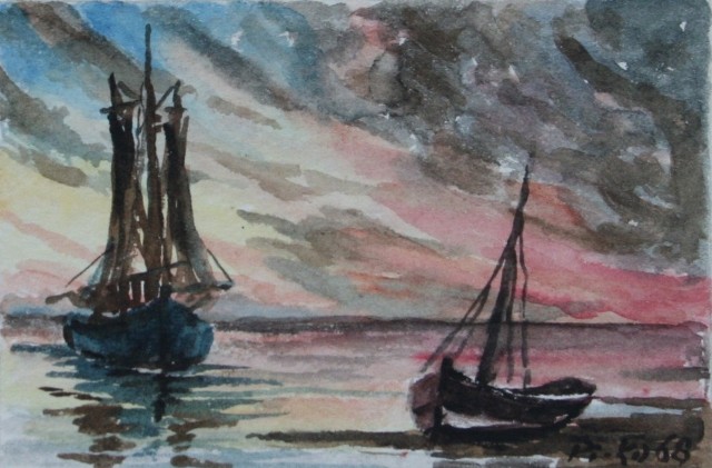 Grußkarte, Aquarell, 15 x 5, 1968