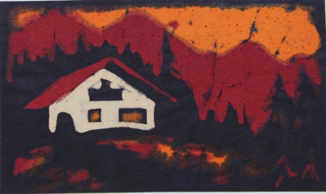 Grußkarte, Wachsbatik, 15 x 5, 1970