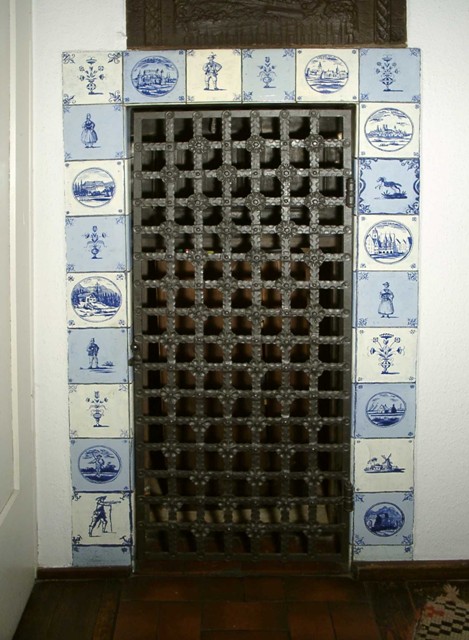 Bemalte Fliesen als Einrahmung eines Ofenportals, 1975