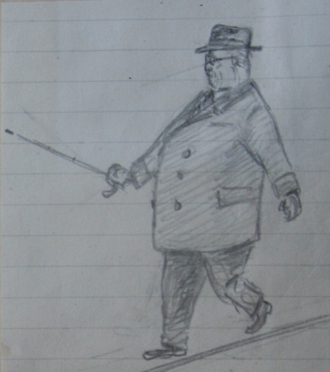 Karrikatur, gezeichnte in einem Skizzenblock.