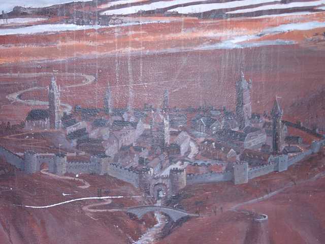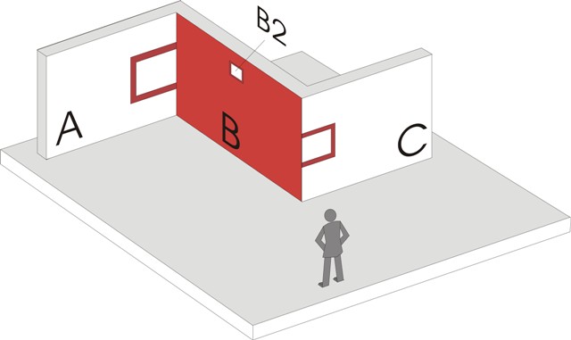Verzerrbild, angebracht an der Wand. Nach Rembrandt. 350 x 300 |